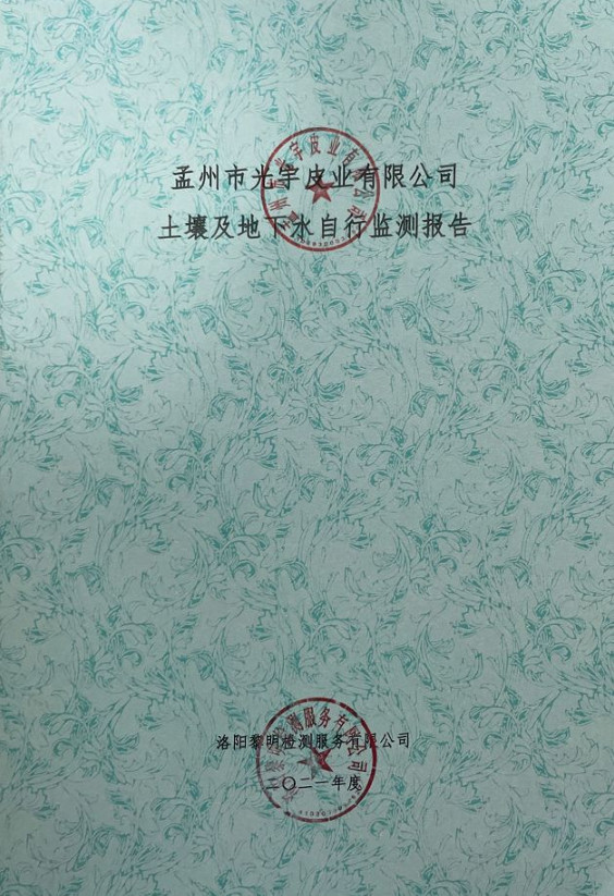 孟州市光宇皮業有限公司土壤及地下水自行監測報告